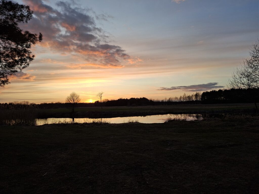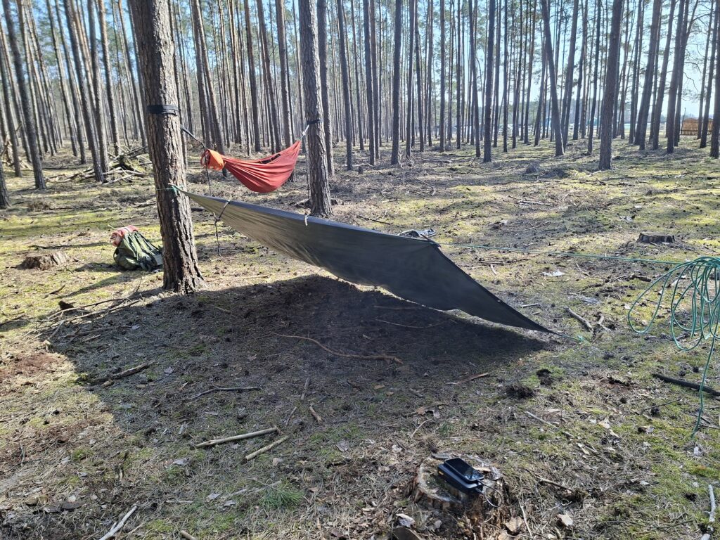 Z uwagi na odległość, postanowiłem wyruszyć już dzień wcześniej. Nocleg urządziłem niedaleko Kórnika, na wyznaczonym miejscu biwakowym w starorzeczu Warty. Była to dobra okazja do przyzwyczajenia się do mrozu w nocy i ćwiczeń z rozbijania obozu przed kursem.
